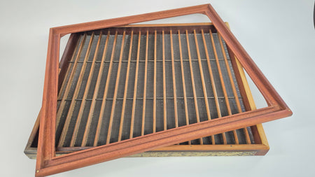 Das Schöpfsieb ist das wichtigste Werkzeug zum Papierschöpfen. Nach dem Schöpfen sollte das Sieb gut ausgespült und abgetrocknet werden. Es wird empfohlen, das Holz von Zeit zu Zeit mit einem leinölgetränkten Lappen einzureiben. Eine ausführliche Pflegeanleitung für die klassischen Schöpfsiebe und die Einsteiger-Schöpfsiebe finden Sie hier ».